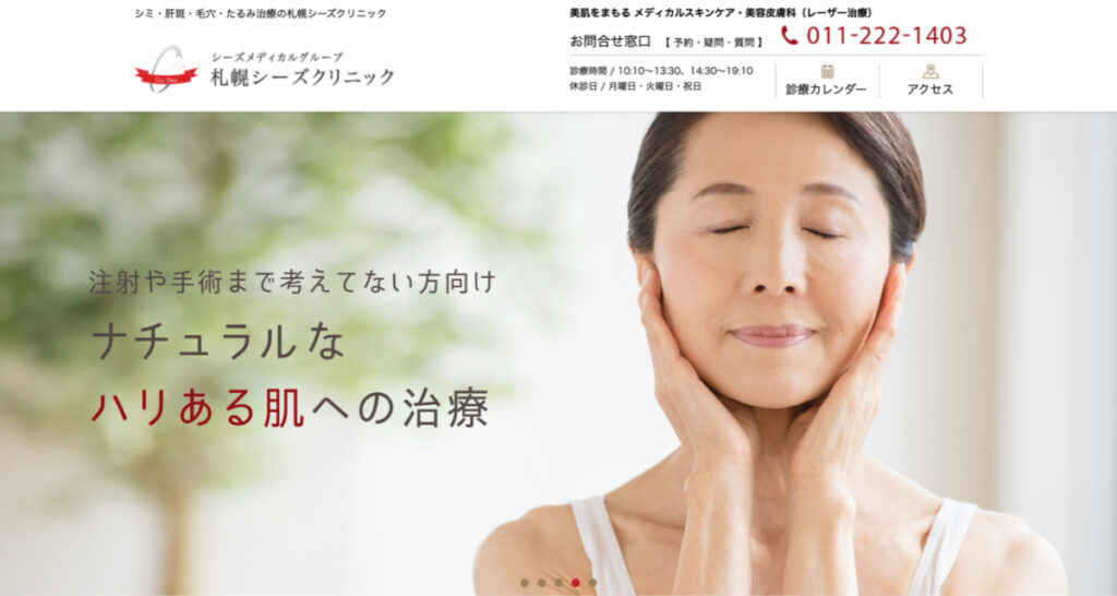 札幌シーズクリニックは、保険皮膚科でも美容外科でもエステサロンでもない「メディカル美肌サロン」として、悩める肌を美肌へ導くような治療を専門的に行っているクリニックです。初めてクリニックに通う方でも安心して通うことができます。