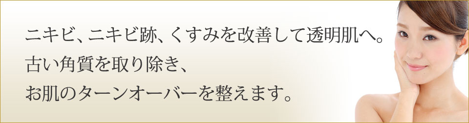 古くなった肌の角質層を取り除き、肌の新陳代謝を促進する治療法です
