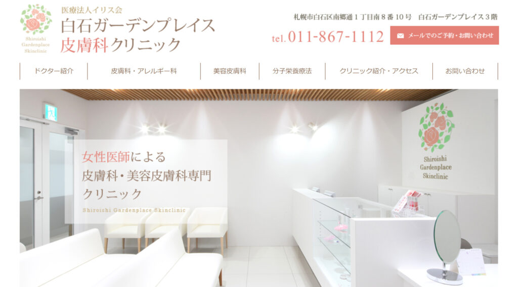 白石ガーデンプレイス皮膚科クリニックは札幌市白石区にある皮膚科・アレルギー科・美容皮膚科です。女性医師が院長を務めているので女性ならではの悩みが相談しやすい環境です。