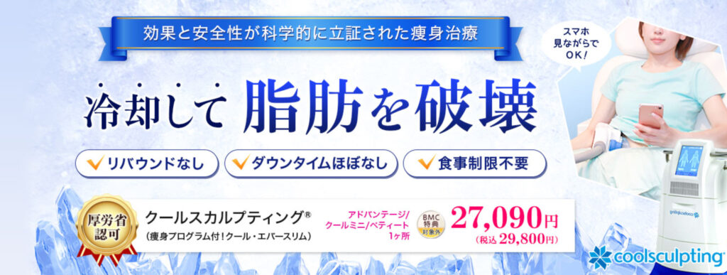入会費520円のBMCメンバー会員制度に加入すると20%オフとなるメニューもあります。(クールスカルプティング、エバー・スリムは割引対象外です)