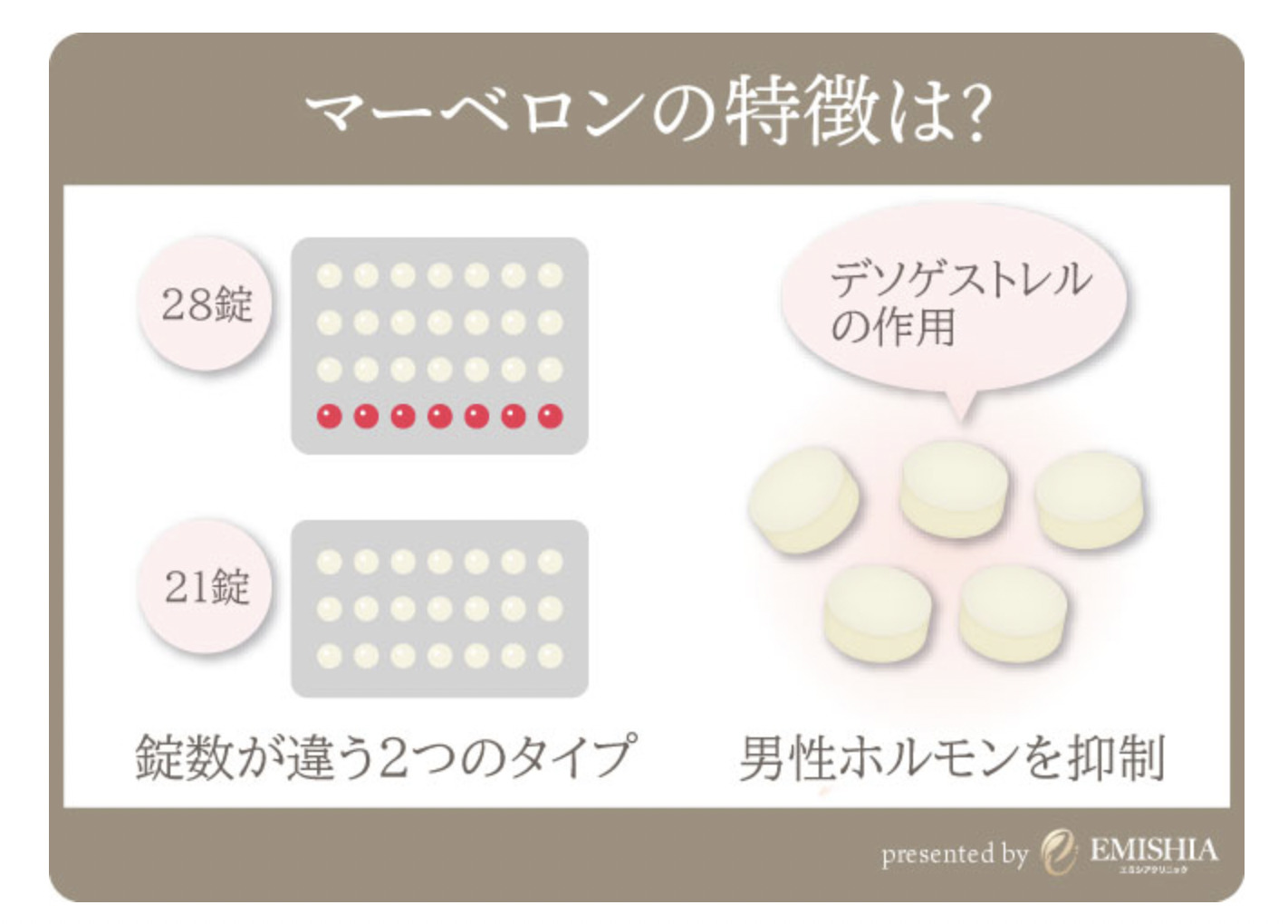 [box class=”box5″]しむら皮膚科は他の低用量ピルに比べ、ニキビの一時的な悪化が起こることが少ないマーベロンを採用しています。これまでマーベロンを服用していて、ピルに慣れている人におすすめです。[/box]