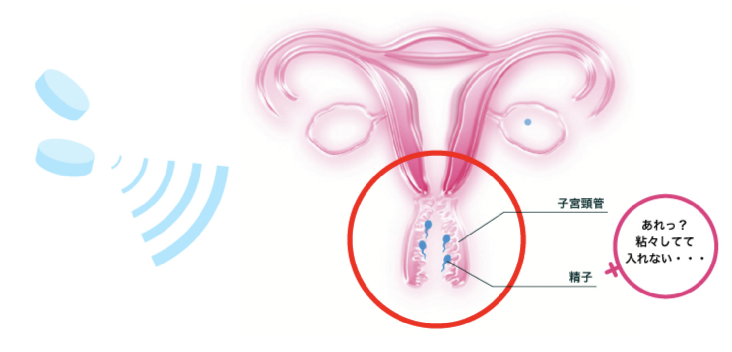 子宮の入り口である子宮頸管の粘液の性状が濃厚粘調となり、精子の進入を妨げます。