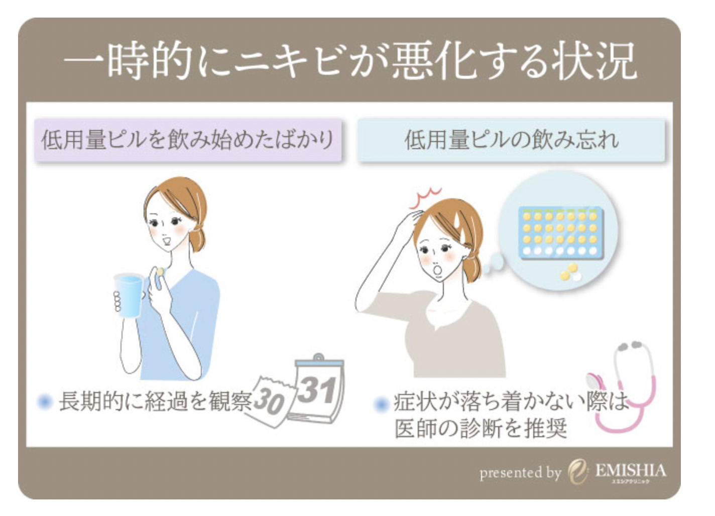 引用:低用量ピルのニキビ改善効果は?肌荒れが悪化することはある?医師が詳しく解説