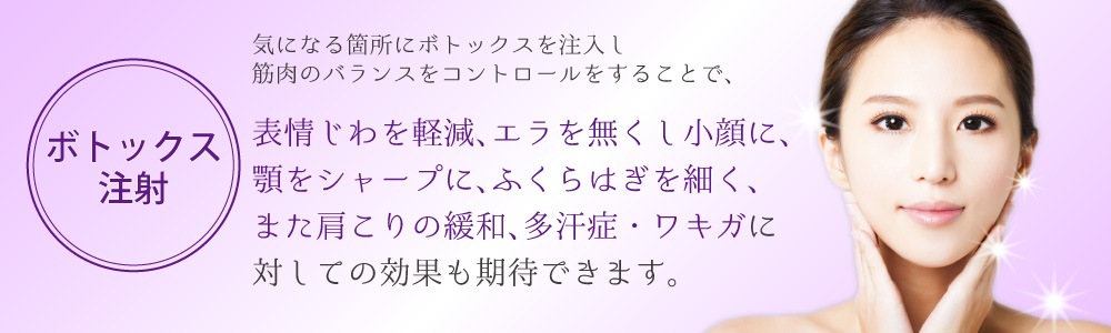 また、ボトックス注射は、シワ治療のほかにも、小顔になりたい場合や、たるみを改善したい場合、
