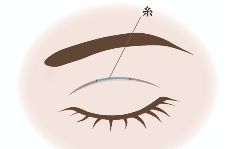 施術詳細 メスを使わず糸をまぶたに埋め込み二重をつくる施術