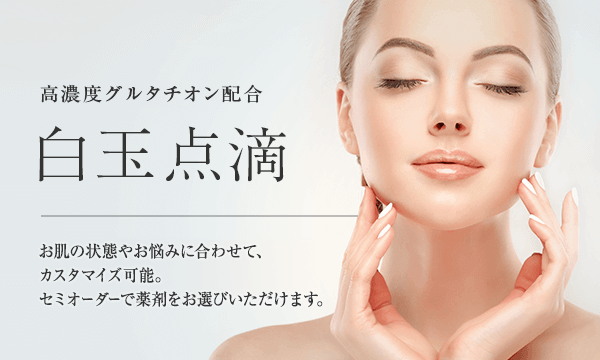 白玉点滴(グルタチオン点滴)は、抗酸化力の高い最強の美白点滴と呼ばれています。透明感のある明るいお肌になりたい方、アンチエイジング・美白におすすめの美白点滴です。