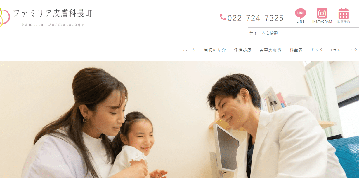 ファミリア皮膚科長町は、ララガーデン内にあるのでショッピングのついでにも通えて便利。クリニック内にはキッズコーナーもあり、お子さま連れにも評判が良いクリニックですよ。