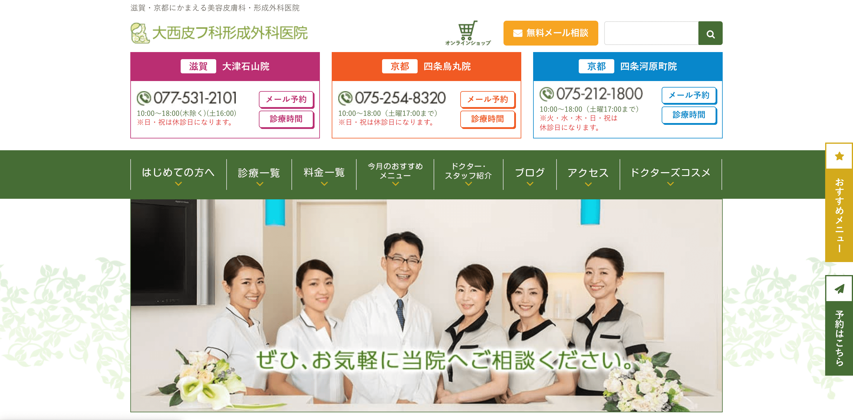 大西美容形成クリニック 京都四条烏丸院の施術と料金