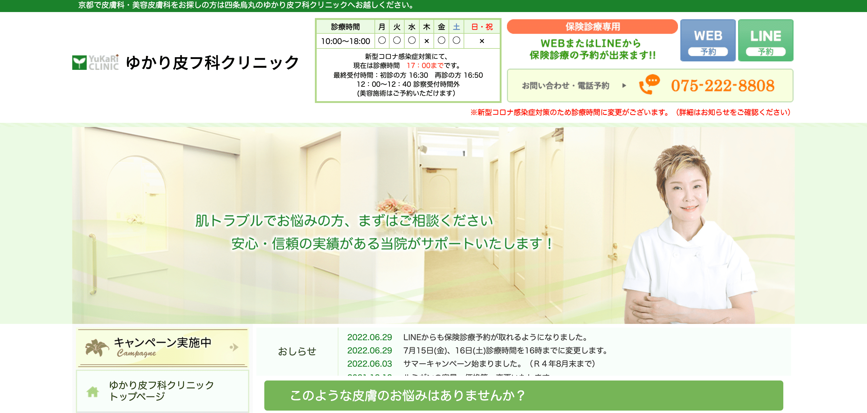ゆかり皮フ科クリニックでは、皮膚科専門医であり女医の院長が診察を担当しています。