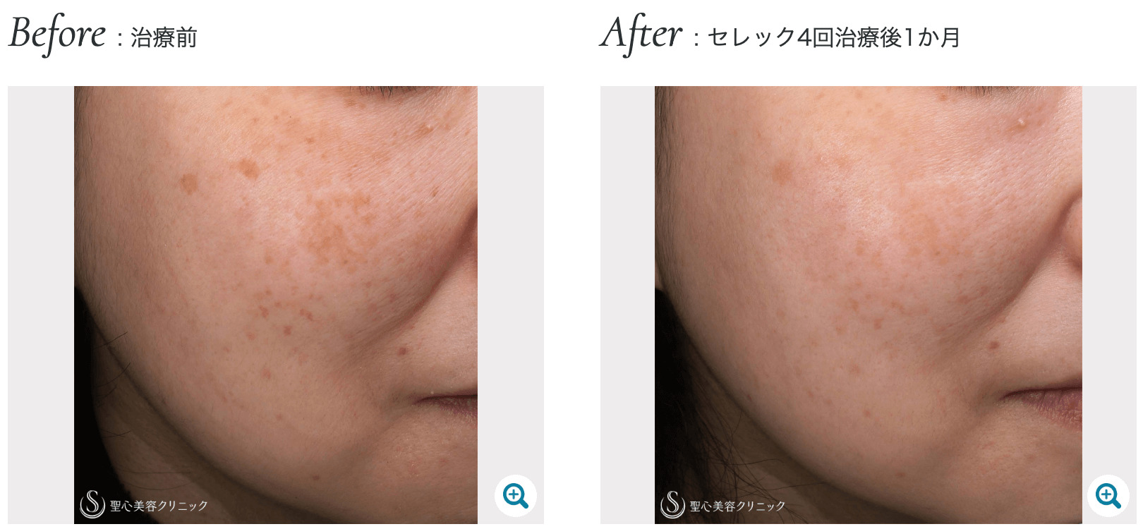 フォトフェイシャルでは、濃すぎるシミや薄すぎるシミには反応しないことがあります。シミの種類や濃さによって適した施術には違いがあるため、ピコレーザーなどほかの施術の併用をすることで、さまざまななシミに対応できることがあります。医師と相談して施術を決めましょう。