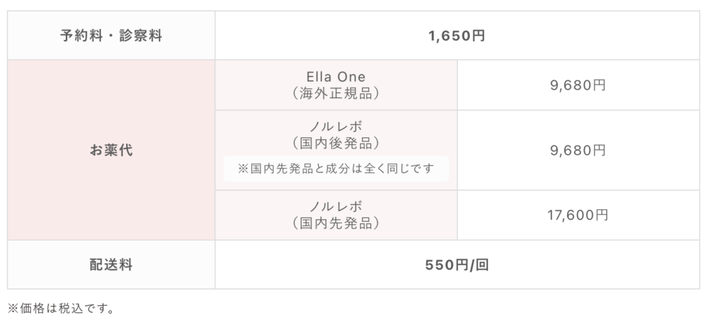 クリニックフォアでは診察料1,650円(税込)とピルの配送料550円(税込)、ピル代の3つの料金以外の支払いが発生しません。分かりやすい料金体系なので、かんたんにオンライン診療を受診できます。