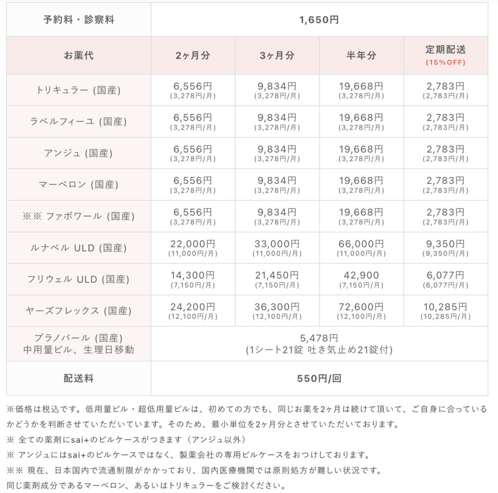 ※中用量ピルは1ヶ月分の値段を元に算出しています