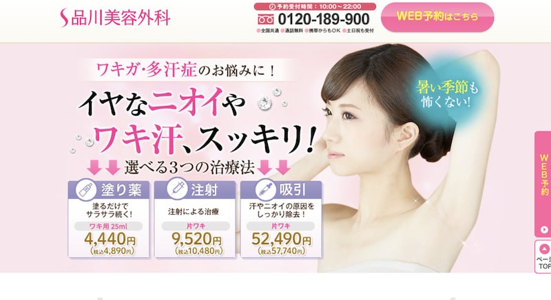 品川美容外科のワキガ治療は3種類の中から、自分の症状や予算に合わせてぴったりのものを選べます。塗り薬や注射など手軽に受けられるものもあるので相談してみてくださいね。