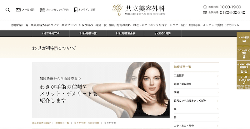 参考:わきが手術・多汗症治療の安くて人気のおすすめクリニック