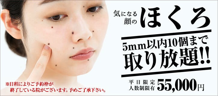 城本クリニックは、ほくろ除去の取り放題プランがありますよ。複数のほくろを同時に解決したいと考えている方が受けたいお得なプランとなっています。